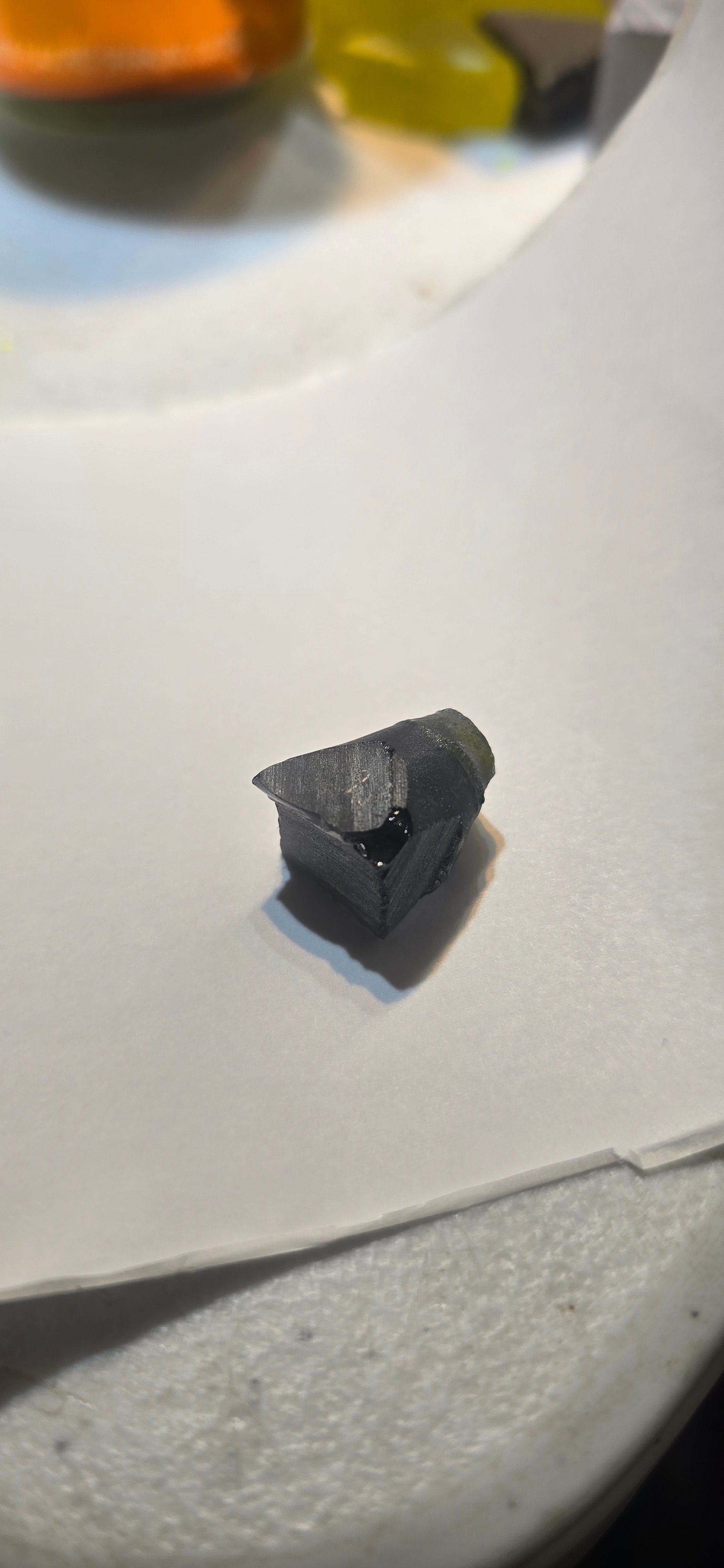 This is a new type of YAG (yttrium aluminum garnet) that we recently got in. It has an unusual grey color which is only found at the tips of some crystals thanks to an unknown impurity or growth defect. The color tends to be a pure blueish-grey color at the tip fading into a purple grey at the base. It cuts a very bright and beautiful stone which resembles the coveted natural grey spinels.