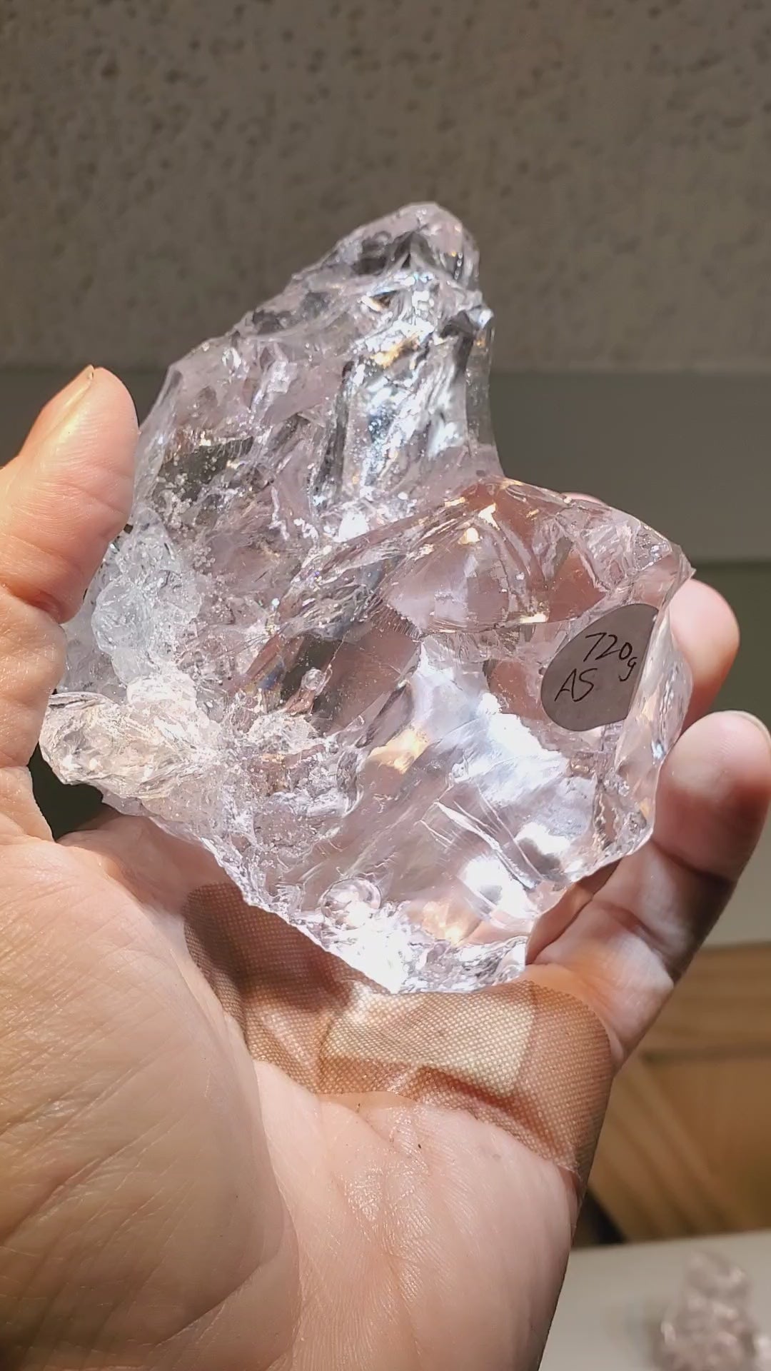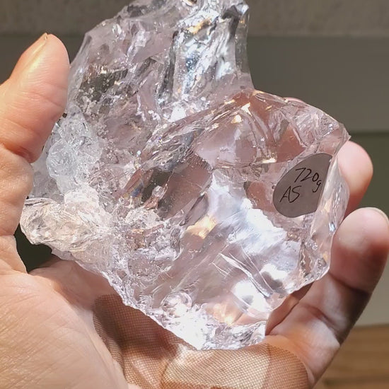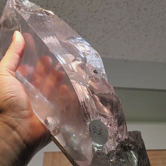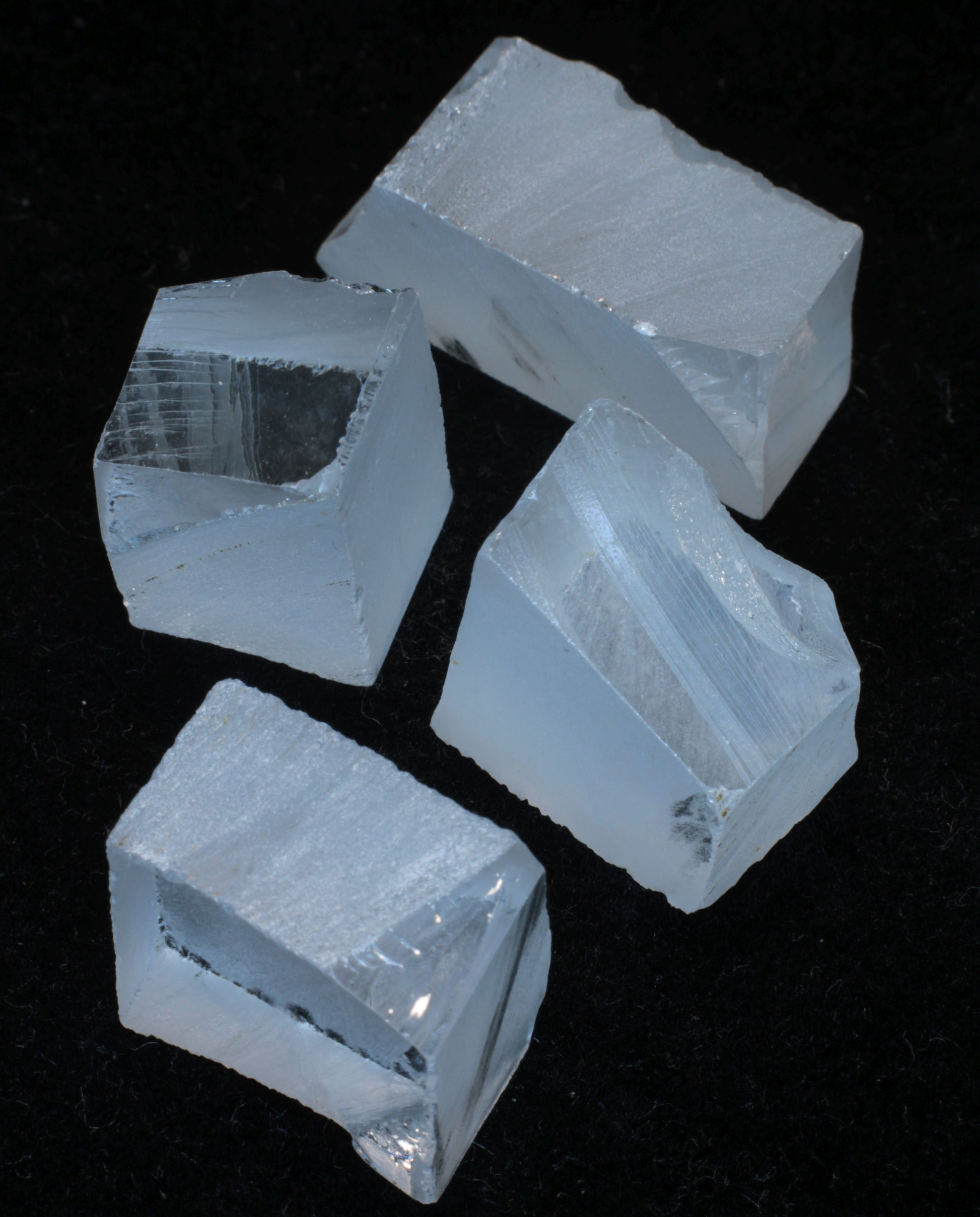 These are chunks of lab created sapphire which were grown for use as sensor windows in the F35 fighter jet but didn't meet spec.  These pieces may have cracks or bubbles and may also show light pink coloration.  A couple pieces still have some of the molybdenum crucible attached.