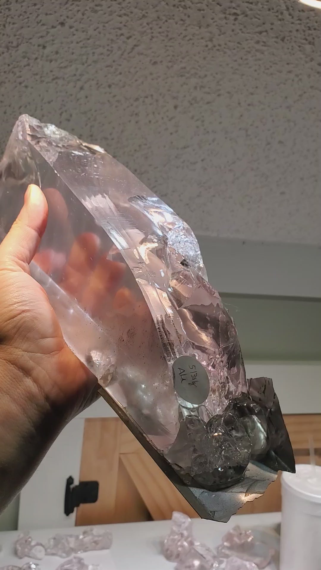 Though the LANCE is absolutely incredible (we got to see it in person and meet the head crystal grower!!) it didn't have a 100% success rate, and over time the company built up a pile of defective sapphire crystals that had either been contaminated with titanium (which turns them pink and ruins UV transmission), developed bubbles, shattered during growth or usually all three.  They recently closed their factory in Chicago and auctioned off the contents, and we were able to visit it in person and buy the entire pile of defective crystals!  It was a dream come true!